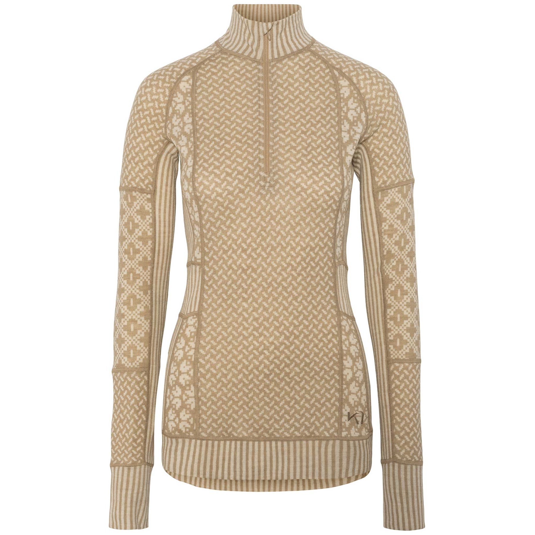 New this season! Kari Traa's Smekker Half Zip is a lightweight, 100% Merino wool baselayer that you can wear for all your outdoor adventures. Panels of Jacquard-knit patterns in different designs create flattering lines and a playful look, while the wool’s natural warmth, and odor resistance keep you comfortable and dry in even the burliest conditions. Layer it under a vest, ski coat or wear as is-- the Smekker Half Zip Top from Kari Traa fits seamlessly into your active routine.
