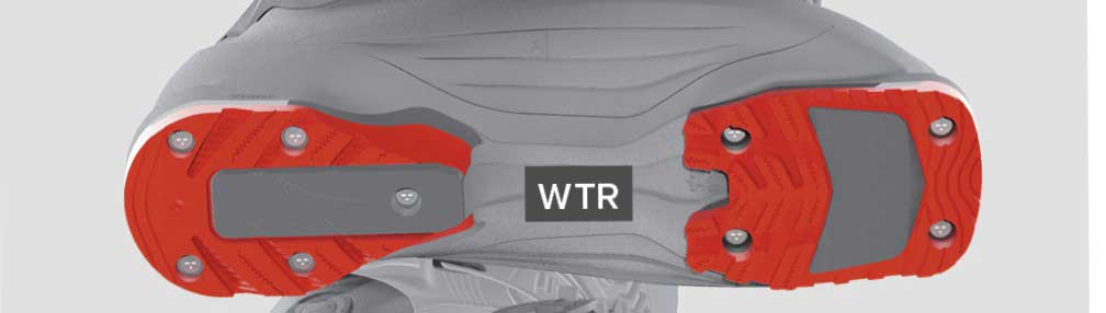 WTR is a sole-binding system found primarily on Salomon ski boots. On your boots, WTR means hard-plastic toe and heel pieces with a slight rocker (in other words, less than Touring soles) designed to enhance walking comfort. WTR bindings, meanwhile, are bindings designed specifically to accommodate those WTR soles (and almost always Alpine soles, too).